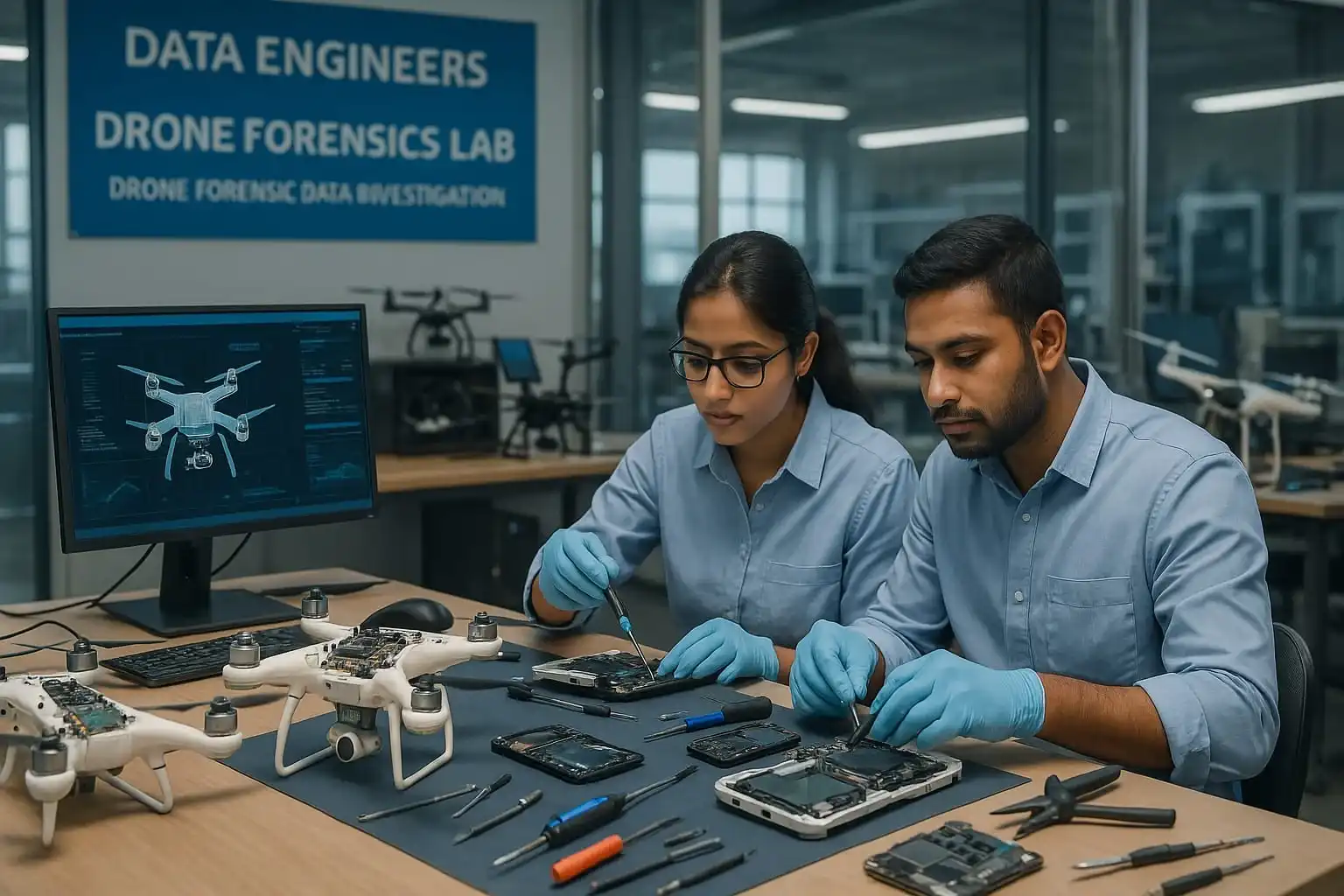 drone data recovery crash pilot error battery failure firmware glitch gps interference retrieve flight logs extract memory forensic analysis secure tools india www.dataengineers.in